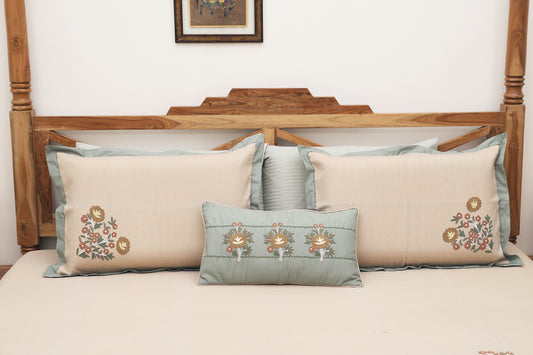 Beige and Pista Embroidered Bedsheet
