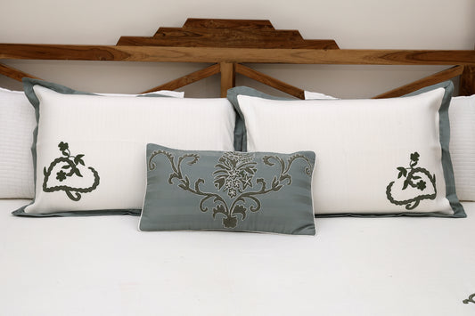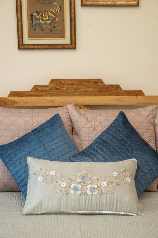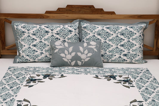 Grey and Blue Embroidered Bedsheet